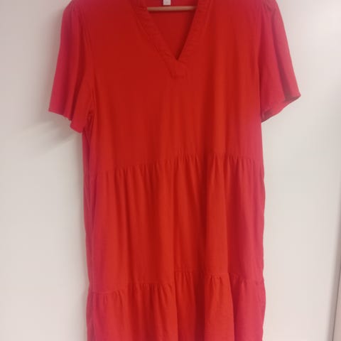 Myydään käyttämätön, uudenveroinen vaaleanpunainen Onlyn viskoosi-pellava lyhyt frillamekko koko L. Kainalo-kainalo mitta on 54 cm ja olka-helma 90 cm.