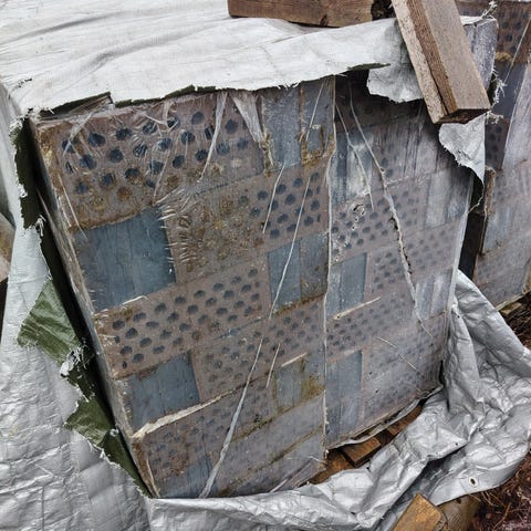 Vaaleita reikätiiliä takan muurauksesta jääneet, leveys n.88mm ja korkeus 60mm. Yhteensä 55kpl, joista 23kpl suorareunaisia pituudeltaan 285mm ja loput kulmastaan viistettyjä pituudeltaan 235mm.