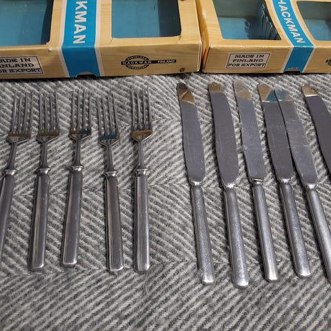 #Hackman #Sorsakoski #aterimet #haarukka #veitsi
