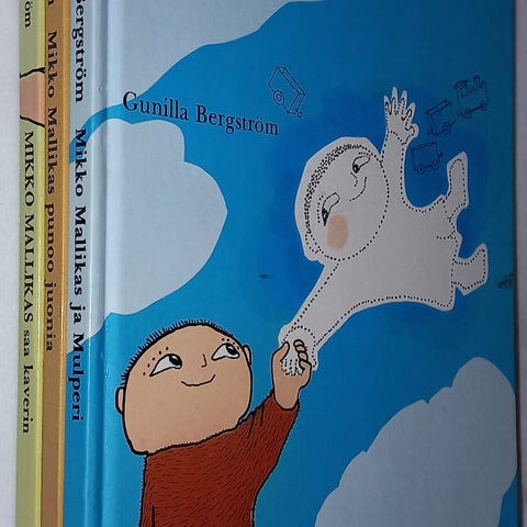 Mikko Mallikas ja Milla kirja (ehjä, mutta ei ole enää priimakuntoinen) + Milla pehmolelu (by Teddykompaniet, siisti ja ehjä).
