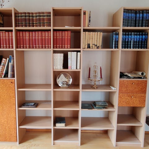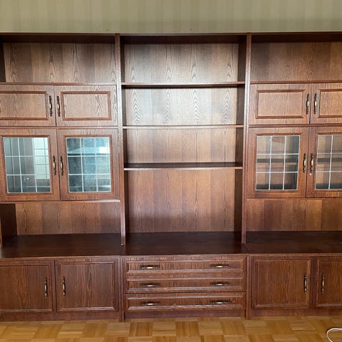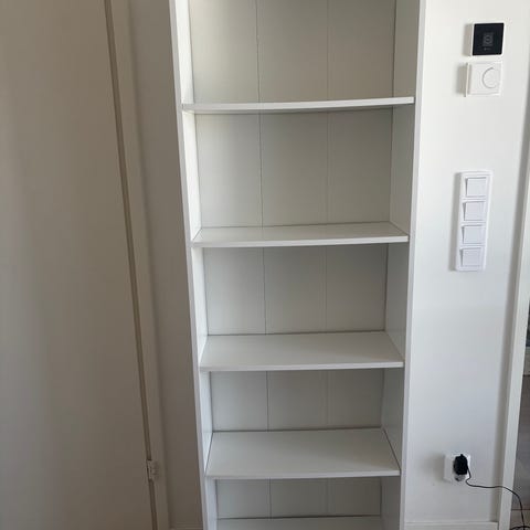 Lahjoitetaan hyväkuntoinen valkoinen kolmeosainen kirjahylly. Keskimmäisessä osassa yksi irrotettava hyllylevy, muut hyllyt kiinteitä.