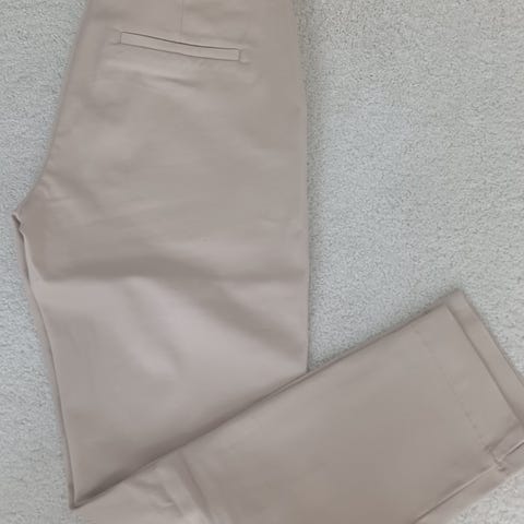 Etro naisten chino-housut, koko S. Väri beige. Materiaali pääosin puuvillaa, mukana hieman elastaania joustavuuden lisäämiseksi. Suora lahjemalli, lahkeensuussa pieni halkio. Edessä viistot taskut ja takana upotetut taskut. Valmistettu Italiassa.