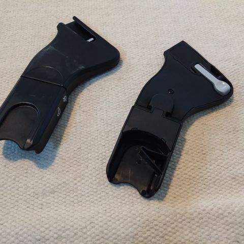 Sopivat Cybexin lasten turvaistuimen tai -kaukalon kiinnittämiseen yhteensopivaan runkoon tai vaunuihin. Muovinen rakenne, lukitusmekanismi yläosassa. Myydään kuvien mukaisena parina.