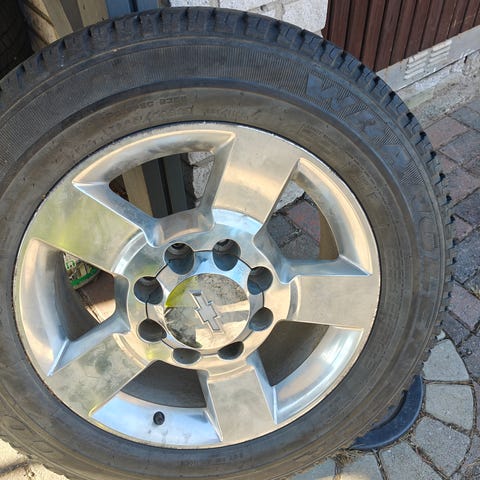 Silveradoa varten aikanaan hommatut pyörät, jäivät nurkkiin auton lähdettyä.