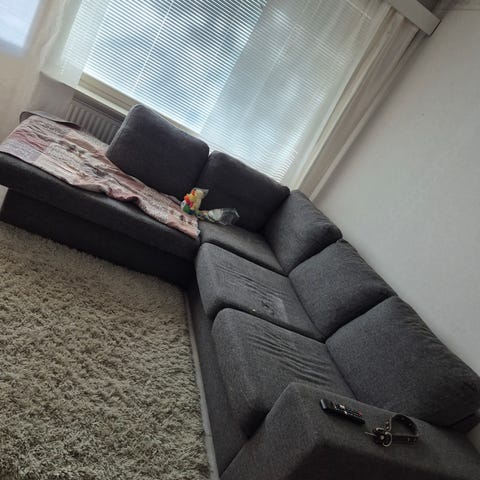 Iso kulmasohva uuteen kotiin. Siisti ja ehjä. Kulmapalassa jousitus hieman tuntuu läpi mutta oikein oiva siinäkin pötkötellä. Irroitettavat / pestävät päälliset. Ollut hetken koirataloudessa.