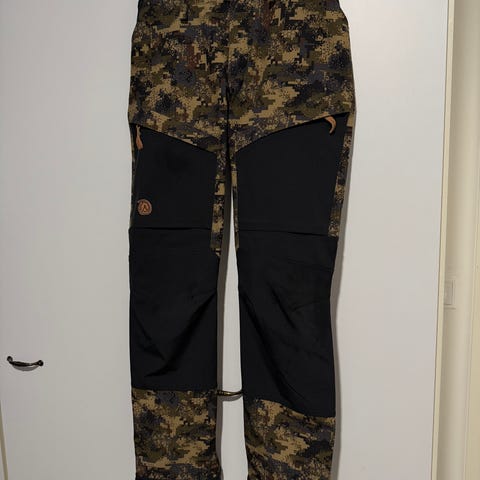 Anarin vihreät joustavat retkeilyhousut, vain muutaman kerran olleet jalassa eli erittäin hyvässä kunnossa. Vahvikkeet polvissa ja takana.