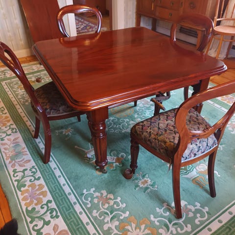 Myydään vanha monikäytöinen jatkettava ovaalinmuotoinen ruokapöytä kauniisti kaareutuvilla jaloilla. Pöydän jatkopaloja on kaksi ja ne saa tarvittaessa nostettua esille liu’uttamalla pöytäkannen osat auki toisistaan jolloin jatkopalat voi nostaa paikoilleen.