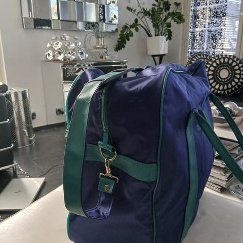 Tipi vihreä keinonahka laukku päällystetty isohko laukku.