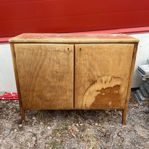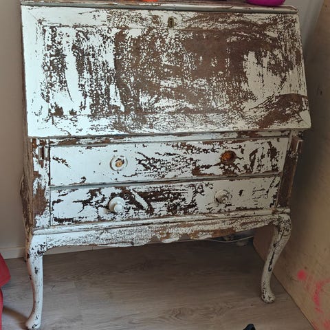 Vanha täyspuinen piironki, ehkä 80-luvulla hankittu. Paljon erikokoisia laatikoita ja säilytystilaa. Pöytälevyn saranat vähän notkahtaneet, muutoin ikäisekseen hyvässä kunnossa.