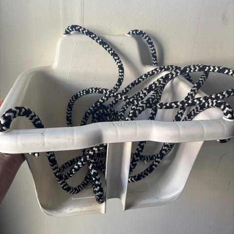Kuvan vauvakeinu. Ulkona käytetty, säilytetty talvet varastossa.