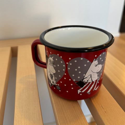 Muurla Moomin enamel mug 3.7 dl. Used. Minor signs of use visible in the pictures. In clean and good condition.