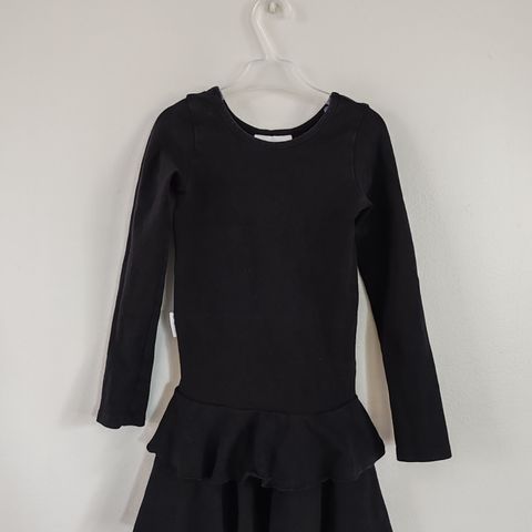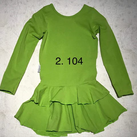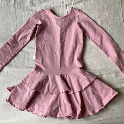 Pinkki, pitkähihainen frillamekko. Hyväkuntoinen ja siisti. Koko 104.