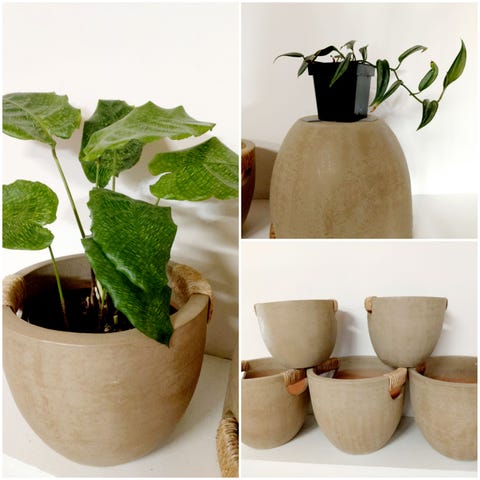 Kuvan kukkaruukut komposiittia tai vastaavaa, hyvin vahvat.