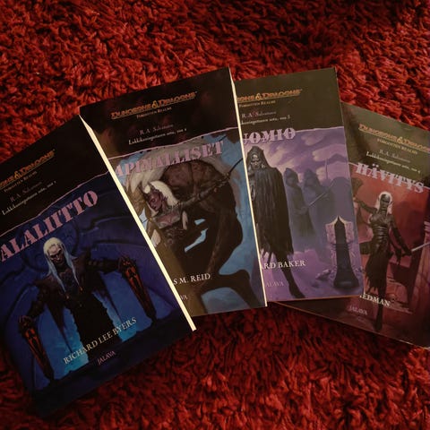 Dungeons & Dragons -kirjasarja, yhteensä 5 suomenkielistä fantasiaromaania. Kirjat ovat kovakantisia. Näkyvissä olevat teokset ovat: