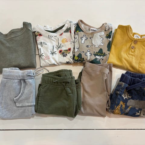 Merkkeinä mm. Newbie, Kappahl, Moomin, H&M.