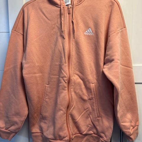 Superdry huppari naisille, koko S. Vetoketjullinen malli, jossa kiristettävä huppu ja etutaskut. Valkoinen pohjaväri, tummansiniset vaakaraidat ja oranssit yksityiskohdat, kuten vetoketju ja rintalogo. Pieni reikä olkapään vieressä, ei juurikaan näy käytössä
