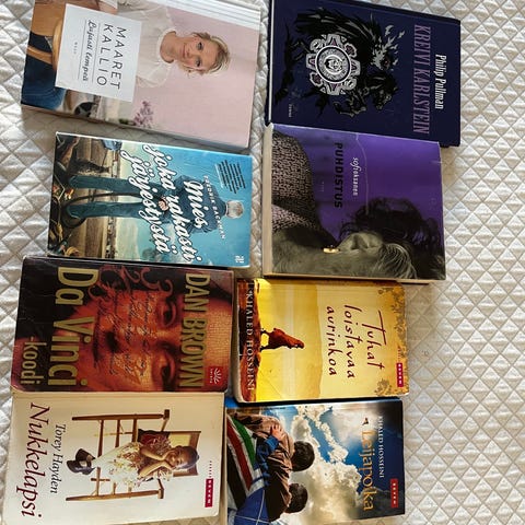 Neljän kaunokirjallisen romaanin kirjapaketti.