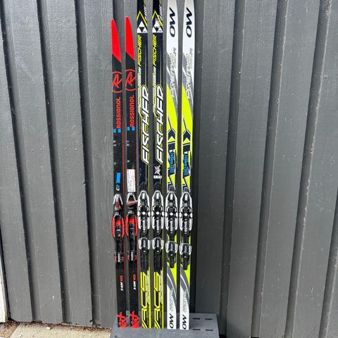 Myydään Fischerin perinteisen kilpasuksia. Kuvaukset suksista vasemmalta oikealle: