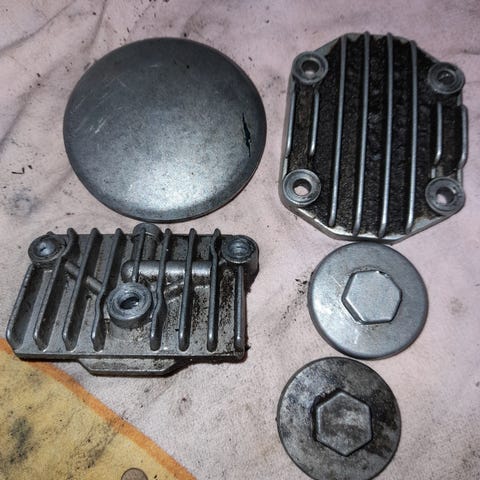 Katteet, ketjut, pinnapillejä, jalkatapit, vaihdepoljin ja magneetonkoppa. Myyntiin.