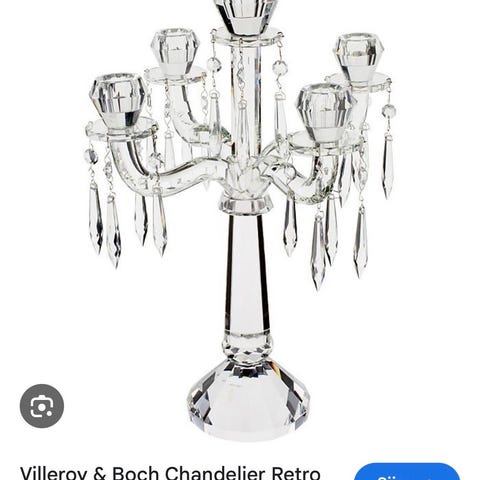 Villeroy & Boch kristallinen kynttilänjalka riippuvin koristeprismoin. Kynttilänjalassa on useita haaroja pöytäkynttilöille sekä roikkuvat, hiotut kristalliprismat jokaisessa haarassa. Materiaalina läpinäkyvä lasi tai kristalli. Sopii pöydälle tai tasolle tunnelmavalaistukseen ja sisustuselementiksi erilaisiin tiloihin.