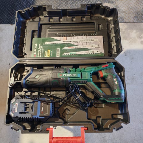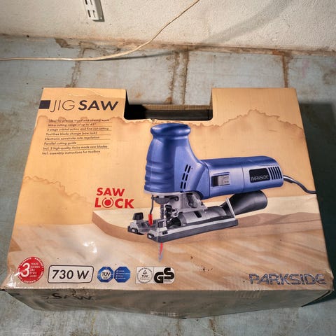 Parkside PFS 710 D3 pistosaha johdolla. Värinä vihreä ja musta punaisilla yksityiskohdilla. Mukana tulee muovinen kuljetuslaukku, käyttöohje ja yksi teräpakkaus. Soveltuu puun ja muiden sopivien materiaalien leikkaamiseen käsityö- ja remonttikäytössä.