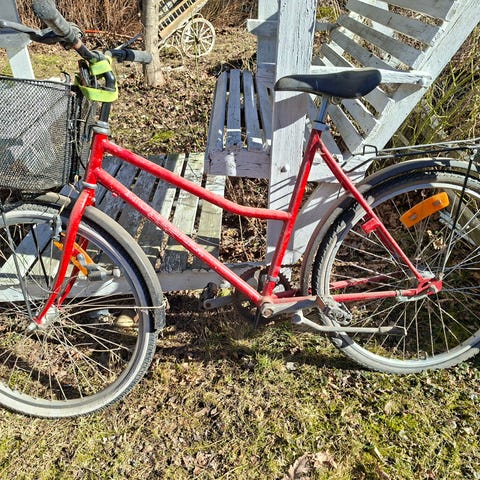 3 vaihdetta, vaatii vähän säätöä. Ehjät renkaat 28 x 1 5/8 x 1 1/3. Valolaitteet ei toimi.