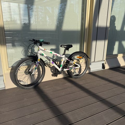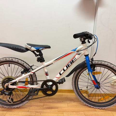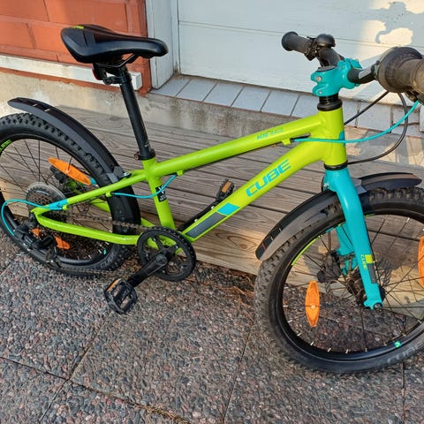 Cube lasten polkupyörä, jossa 20" renkaat ja vihreä runko. Pyörässä on etu- ja takajarrut, vaihteisto takana (7 vaihdetta) sekä heijastimet pinnoissa. Satula on säädettävissä ajajan pituuden mukaan.