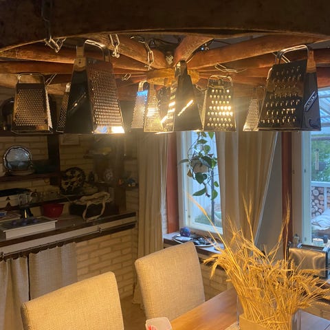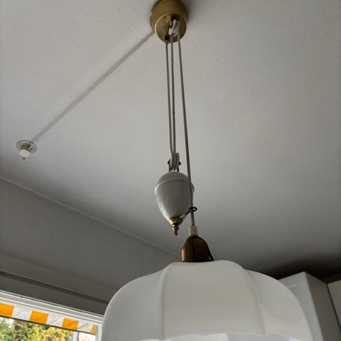 Ilmeisesti Hollantilaista käsityötä. Ei ole nykyisessä talossa löytänyt paikkaansa. Hieno valaisin! Halkaisija 60cm