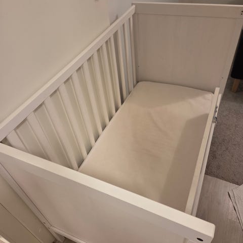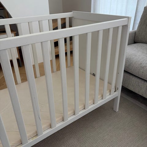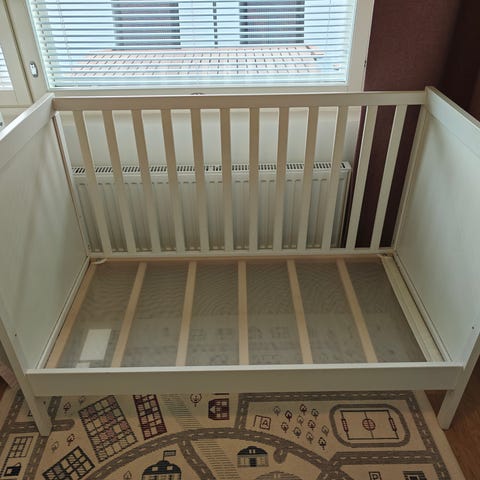 IKEA Sundvik pinnasänky harmaana. Puinen pinnasänky, jossa sälepäädyt ja laidat. Sopii vauvalle ja taaperolle. Sängyn laidat ovat irrotettavissa, jolloin sänkyä voi käyttää myös matalana lastensänkynä. Väri vaaleanharmaa, neutraali ja sopii monenlaiseen lastenhuoneen sisustukseen.