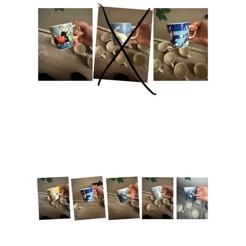 Myydään käyttämättömät ja tarralliset Arabia, Heljä Liukko-Sundströmin mukit. Kuvissa näkyy mukit ja ne ovat nimeltään