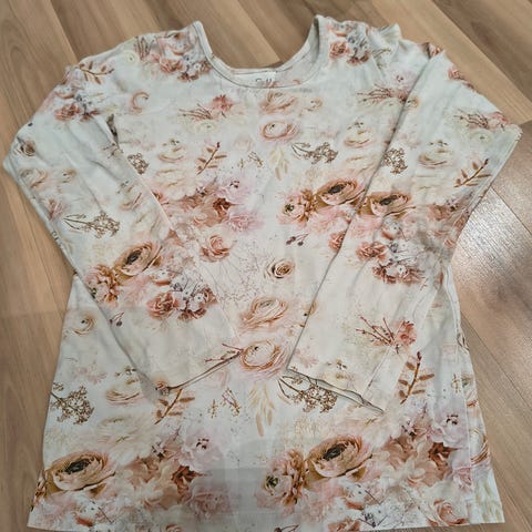 Gugguu mekko tytöille, koko 140 cm. Pitkähihainen malli, valmistettu puuvillasta. Vaalean persikansävy ja edessä pystysuuntaiset röyhelöyksityiskohdat. Pyöreä pääntie ja hieman levenevä helma. Sopii arki- ja juhlakäyttöön.
