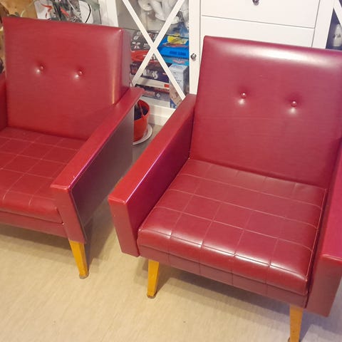 Vanha punainen Askon kernisohva.