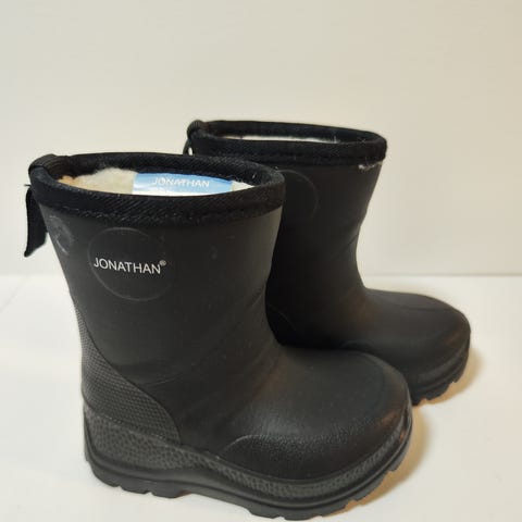 Jonathan vuoriliset kevytsaappaat, koko 20. Harmaat/ruskeat kumisaappaat, joissa karvavuori sisäpuolella ja karkea ulkopohja paremman pidon takaamiseksi.