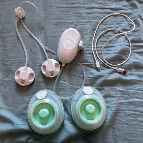 Elvie Pump Single sähkökäyttöinen rintapumppu, todella näppärä johdoton pumppu, joka on helppo sujauttaa liivien sisälle.