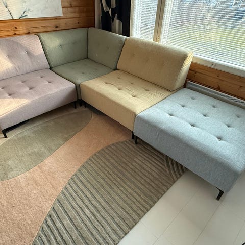 Myydään hyvin vähällä käytöllä ollut Maskun U-kulma vuodesohva. Keskiosa nousee ylös nii saa nukkuma tilaa. Syvyys mitat 84/201. Noin vajaa 4 vuotta vanha sohva. Vasta pesty pesurilla koko sohva. Divaaniosat purkenee erikseen, samoin selkänoja ja tuo nostettava vuodesohva osa