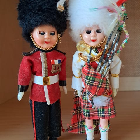 Merihenkiset kapteenipatsaat, kaksi koristefiguuria. Suurempi hahmo esittää partaista kapteenia sinisessä takissa, mustissa saappaissa ja valkoisessa lakissa, kädessään kiikarit. Pienempi hahmo esittää seisovaa kapteenia sinisessä takissa, valkoisissa housuissa ja valkoisessa lakissa, puualustalla. Molemmat patsaat ovat monivärisiä ja sopivat esimerkiksi sisustuselementiksi tai kokoelmaan meriaiheisina koriste-esineinä.