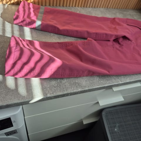 Uutena ostetut, yhdellä lapsella käytetyt Ciraf-merkkiset ulkohousut. Ehjät, hyväkuntoiset, vähän näkyy tummaa värjäytymää kankaassa (ei lähtenyt pesussa), mutta ei vaikuta käyttöön.