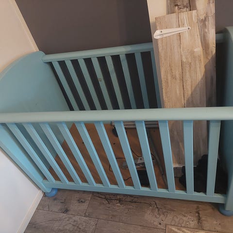 Annetaan pinnasänky. Sänky mennyt ajansaatossa hieman kiikkeräksi, jonka vuoksi liimaukset tulee uusia. Reunoissa myös pieniä puremajälkiä, näkyy kuvassa.