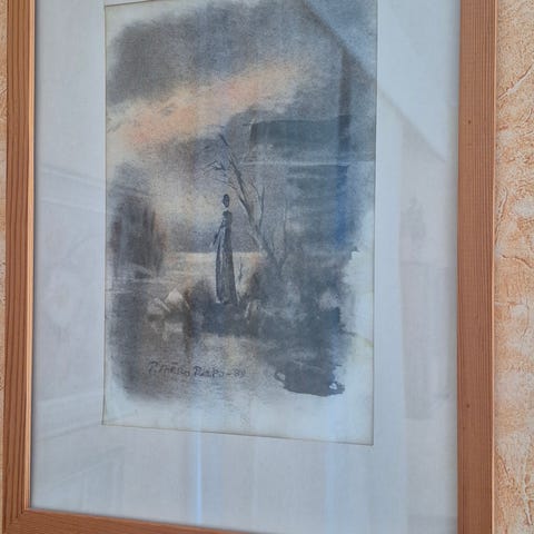 Myydään akvarelli, jonka olen ostanut taiteilijan näyttelystä. Signeerattu P. Haapanen -93. Työn päällä on lasi ja se on kehystetty valkoisilla puukehyksillä ja siinä on passepartout-aukko kuvan ympärillä. Sopii esimerkiksi olohuoneen, makuuhuoneen tai työtilan seinälle sisustuselementiksi. Koko 53 x 43 cm.
