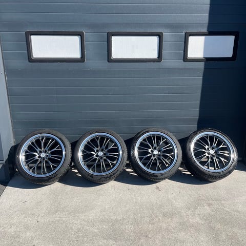 Mak alumiinivanteet viime kesänä ostetuilla kumeilla. Vanteissa kanttari-ihottumaa mutta ovat suorat. Kulkeutuu silloin tällöin Vaasaan. Mieluiten vaihto toisiin 5x108 17-19” vanne+rengas sarjaan