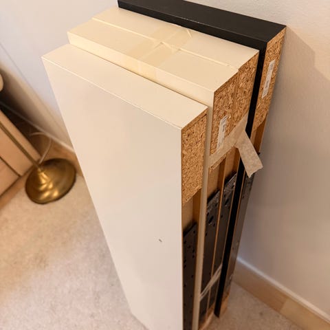 Löytyy myös toinen samanlainen käytössä ollut seinähylly, siinä pieniä käytön jälkiä. Sen saa mukaan jos tarvitsee.