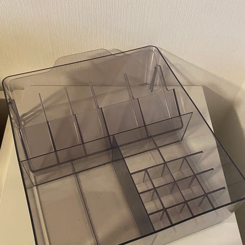 Beigeä kangasta. Kiinnitys tankoon valkoisilla nepparinapeilla. Soveltuvat pientavaroiden säilytykseen esimerkiksi eteisessä, makuuhuoneessa tai kylpyhuoneessa. Meillä olivat käytössä vaippakoreina vauvanhoitopisteeellä.