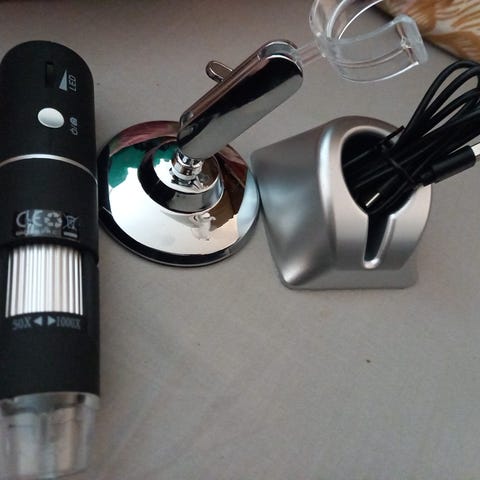 Mikroskooppi näytöllä, muutama eri linssi mukaan. Soveltuu mm. SMD elektroniikan katseluun lähemmältä. Kuvia ja videota voi tallentaa muistikortille (muistikorttia ei mukana).