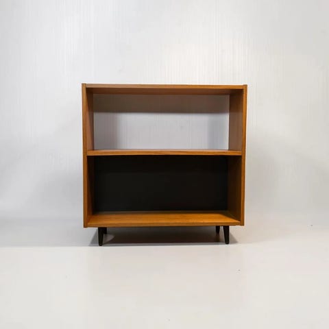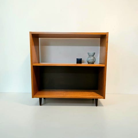 Askon vintage kirjahylly, selkeälinjaisen mustatikkaisen hyllysarjan on suunnitellut Jussi Peippo (1958). Yläosan hyllyn paikoissa runsaasti säätövaraa, alkuperäiset kannakkeet tallessa. Alaosassa senkki liukuovilla. Hyllylevyn saa irti jos tarvitsee korkeampaa säilytystilaa esim. levyille. Hyllyn saa purettua osiin kuljetusta varten. Voimme myös kuljettaa kokonaisena lisämaksusta (pk-seutu), kysy hintaa alueellesi.