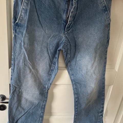 Zara farkut miehille, koko 42 (vyötärö W32). Materiaalina denim, väri sininen. Mallissa on kulutettu ja revitty viimeistely edessä sekä takana, ja lahkeet kapenevat nilkkaa kohti. Housuissa on viisitaskumalli, nappikiinnitys sekä vyölenkit. Sopivat arkikäyttöön ja vapaa-aikaan.