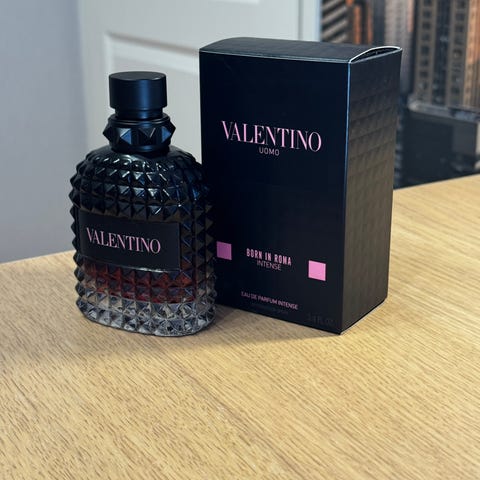 Valentino Uomo Born In Roma Coral Fantasy miesten hajuvesi. Tuoksu on pakattu koristeelliseen, niittikuvioituun lasipulloon, jossa on musta korkki. Mukana alkuperäinen musta pakkaus, jossa tuotteen nimi ja sarja. Sopii miesten käyttöön päivittäisenä tai iltatuoksuna.