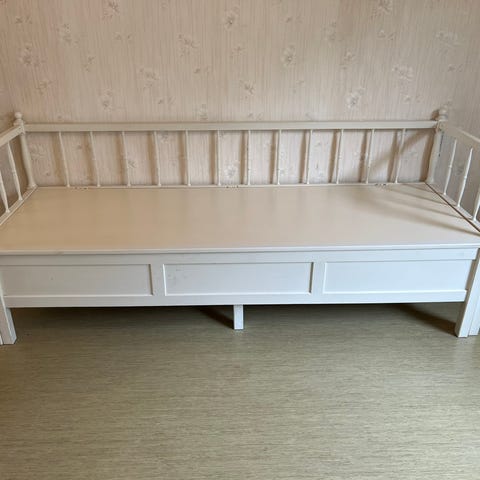 Puu-osiltaan hyvässä kunnossa ja maalipinnaltaan tyydyttävässä kunnossa oleva vanha puusohva etsii uutta kotia. Mahdollisesti avattava (?), mutta palvellut meillä vain ylimääräisenä istumapaikkana juhlien aikaan.