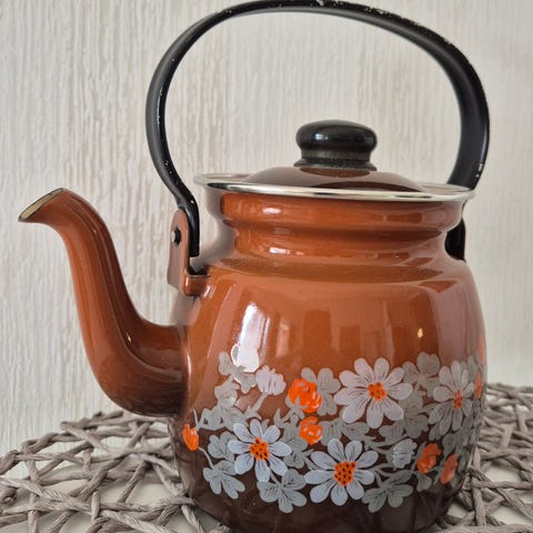 Finelin vaaleansininen kahvipannu. Kulumaa kannessa ja sisältä nokeentunut. Korkeus n 13 cm. Vain nouto Ilpoisista. Ei postitusta.