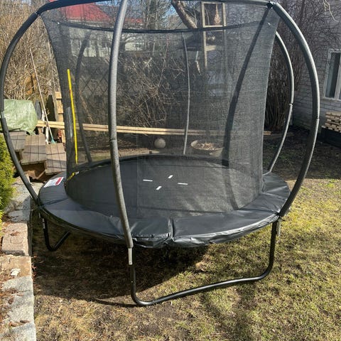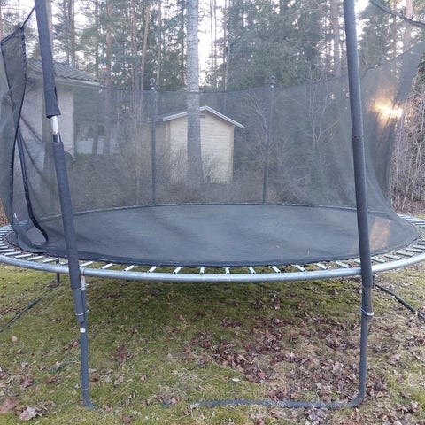 Myynnissä pienemmillekin pihoille sopiva trampoliini. Merkki Fitnord, ostettu Kuntokaupasta vuonna 2022. Ollut lasten käytössä kesäisin ja purettu aina talveksi kokonaan ja varastoitu sisätiloissa. Myydään purettuna, ohjekirja löytyy ja kaikki osat ok kunnossa ja tallessa.
