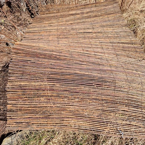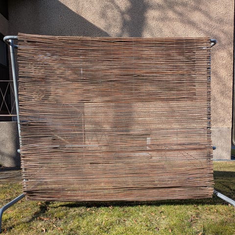 Ruskea pajuaita (K-Rauta), korkeus 1m, leveys 3m.
